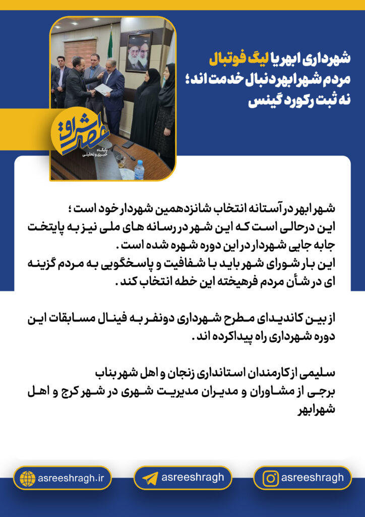 شهر ابهر در آستانه انتخاب ۱۶ شهردار خود است